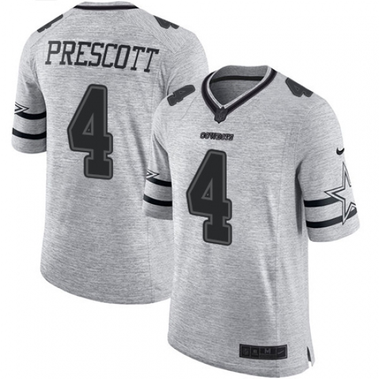 Home>NFL>Dallas Cowboys>Dak Prescott>Men's Nike Dallas Cowboys #4 Dak Prescott Limited Gray Gridiron II NFL Jersey