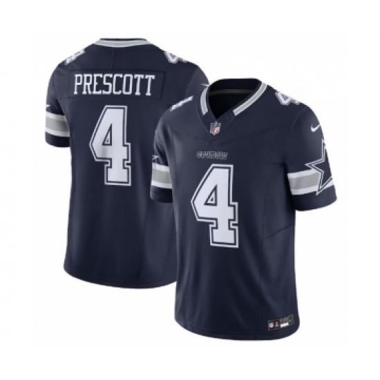 >Men's Nike Dallas Cowboys #4 Dak Prescott Navy 2023 F.U.S.E. Vapor Limited Stitched Football Jersey