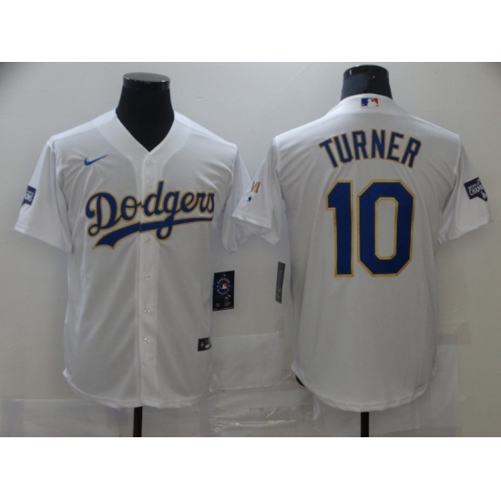 Men's Los Angeles Dodgers #10 Justin Turner Nike White Authentic Golden Edition Jersey