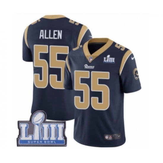 >Men's Nike Los Angeles Rams #55 Brian Allen Navy Blue Team Color Vapor Untouchable Limited Player Super Bowl LIII Bound NFL Jersey
