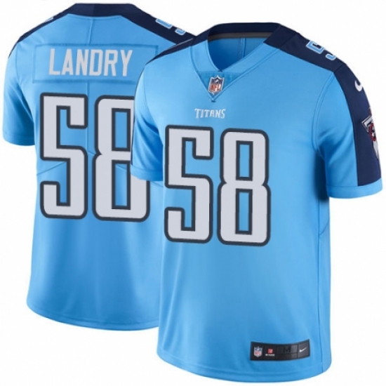 >Men's Nike Tennessee Titans #58 Harold Landry Limited Light Blue Rush Vapor Untouchable NFL Jersey
