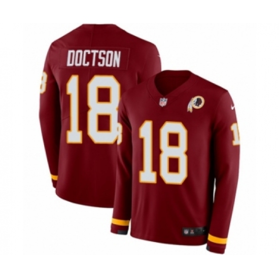 >Men's Nike Washington Redskins #18 Josh Doctson Limited Burgundy Therma Long Sleeve NFL Jersey