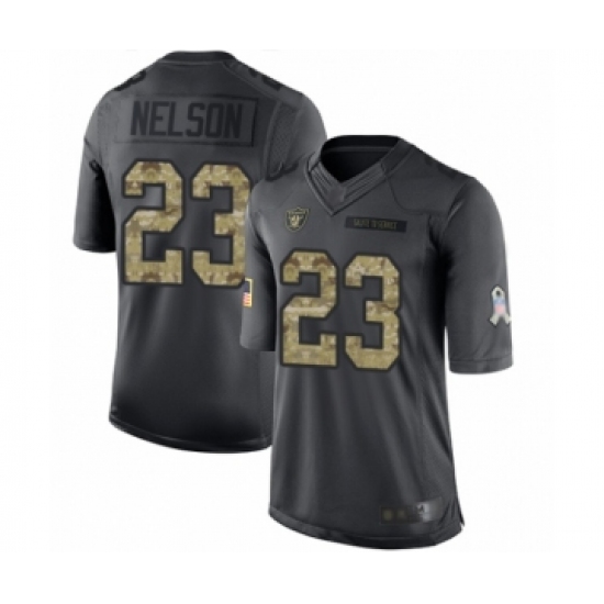 >Men's Oakland Raiders #23 Nick Nelson Limited Black 2016 Salute to Service Football Jersey
