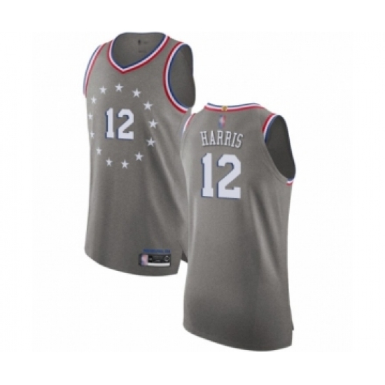 >Men's Philadelphia 76ers #12 Tobias Harris Authentic Gray Basketball Jersey - City Edition