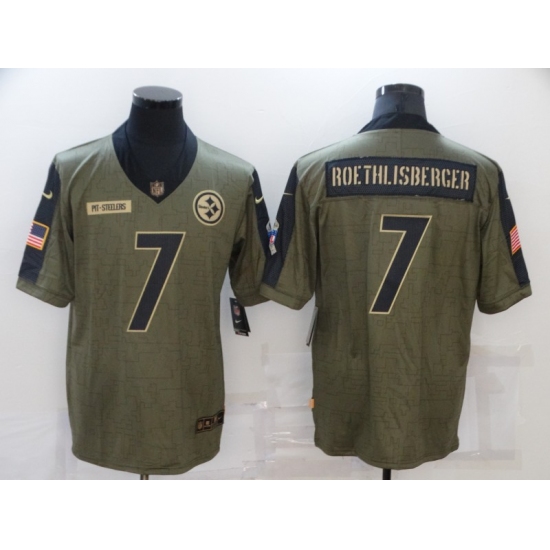>Men's Pittsburgh Steelers #7 Ben Roethlisberger Nike Olive 2021 Salute To Service Limited Player Jersey