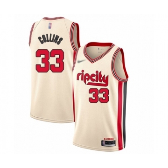 >Men's Portland Trail Blazers #33 Zach Collins Swingman Cream Basketball Jersey - 2019 20 City Edition