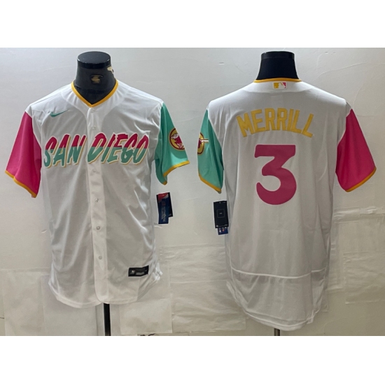 >Men's San Diego Padres #3 Jackson Merrill White 2024 City Connect Flex Base Stitched Jersey