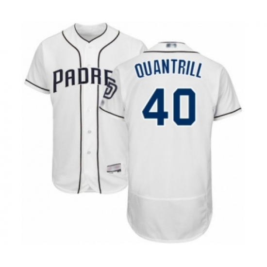 Men's San Diego Padres #40 Cal Quantrill White Home Flex Base Authentic Collection Baseball Player Jersey