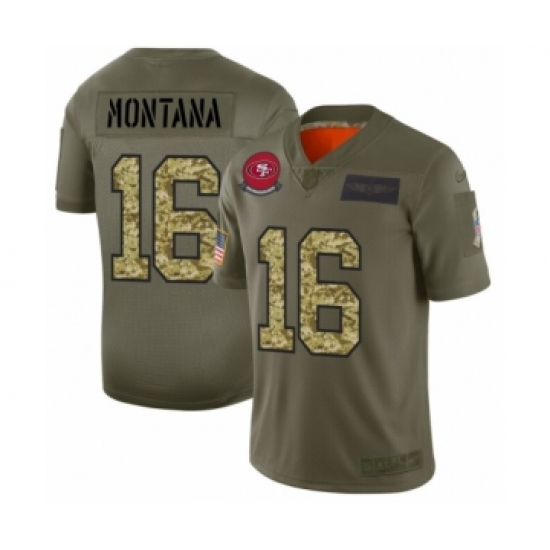 Men's San Francisco 49ers #16 Joe Montana 2019 Olive Camo Salute to Service Limited Jersey