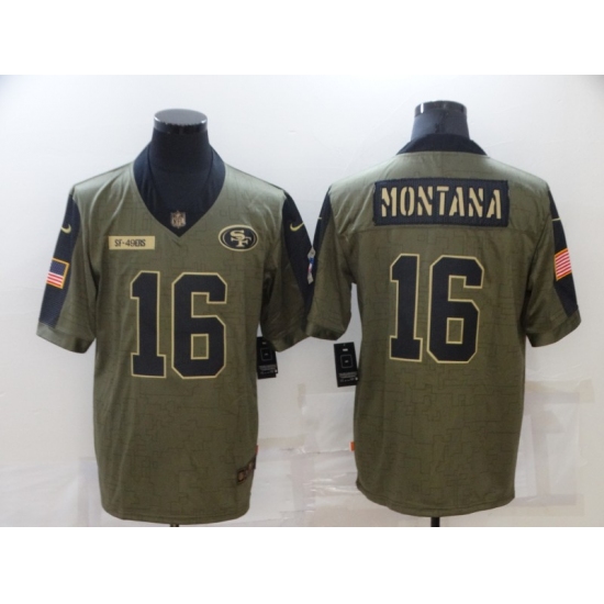 >Men's San Francisco 49ers #16 Joe Montana Nike Olive 2021 Salute To Service Limited Player Jersey