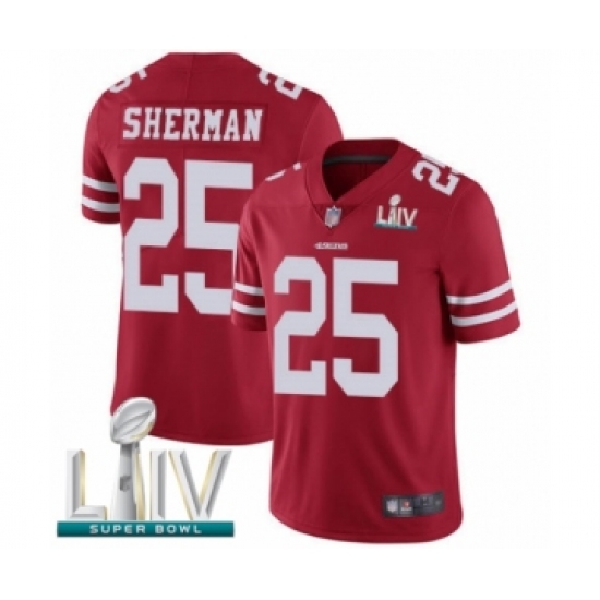 Men's San Francisco 49ers #25 Richard Sherman Red Team Color Vapor Untouchable Limited Player Super Bowl LIV Bound Football Jersey