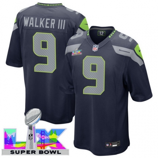Men's Seattle Seahawks #9 Kenneth Walker III Blue 2025 2026 Super Bowl LX F U S E Stitched Jersey