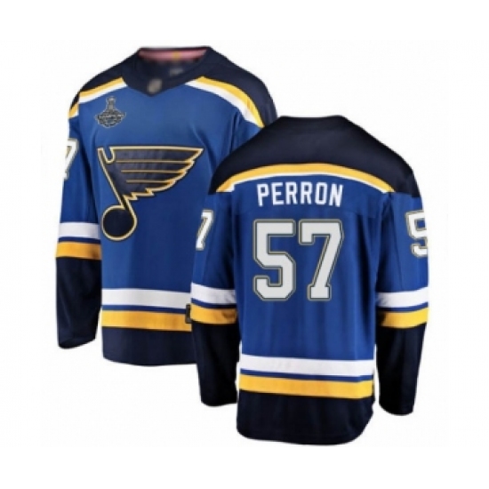 >Men's St. Louis Blues #57 David Perron Fanatics Branded Royal Blue Home Breakaway 2019 Stanley Cup Champions Hockey Jersey