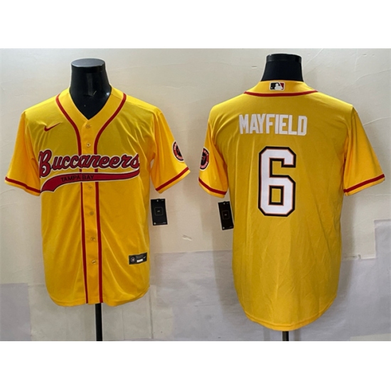 Men's Tampa Bay Buccaneers #6 Baker Mayfield Gold Cool Base Stitched Baseball Jersey