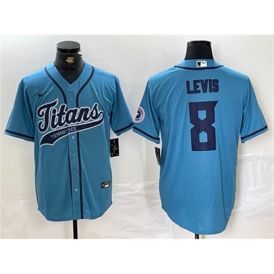 Men's Tennessee Titans #8 Will Levis Blue With Cool Base Stitched Baseball Jersey
