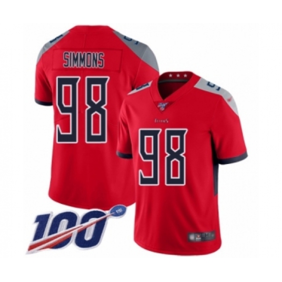 Men's Tennessee Titans #98 Jeffery Simmons Limited Red Inverted Legend 100th Season Football Jersey