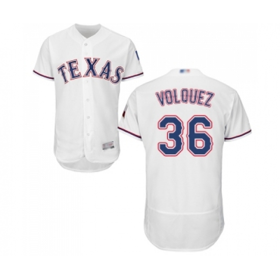 Men's Texas Rangers #36 Edinson Volquez White Home Flex Base Authentic Collection Baseball Jersey