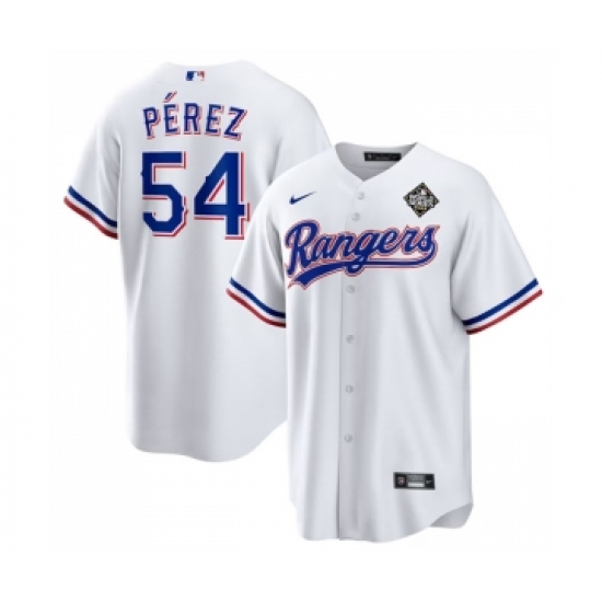 Men's Texas Rangers #54 Martín Pérez White 2023 World Series Stitched Baseball Jersey