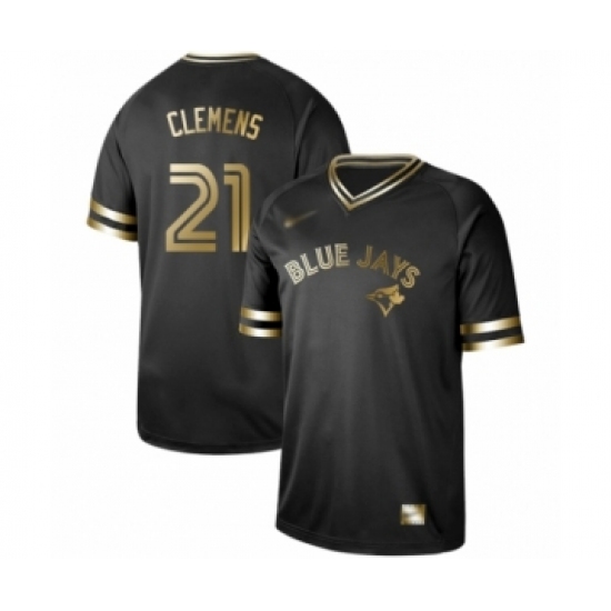 >Men's Toronto Blue Jays #21 Roger Clemens Authentic Black Gold Fashion Baseball Jersey