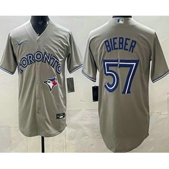 Men's Toronto Blue Jays #57 Shane Bieber Gray Cool Base Jersey