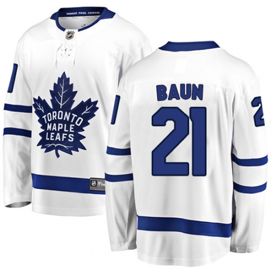 Home>NHL>Toronto Maple Leafs>Bobby Baun>Men's Toronto Maple Leafs #21 Bobby Baun Fanatics Branded White Away Breakaway NHL Jersey