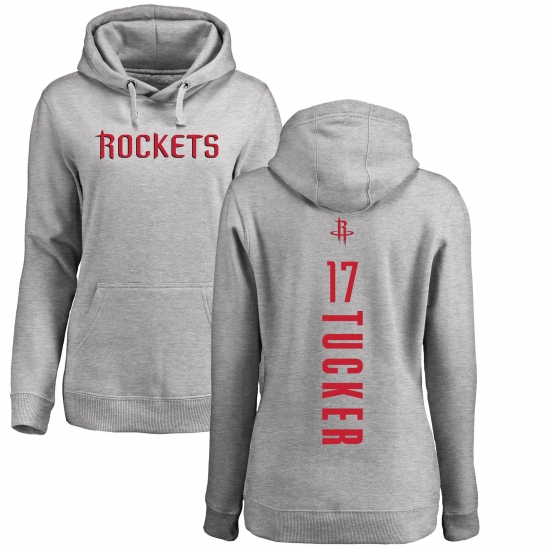 >NBA Women's Nike Houston Rockets #17 PJ Tucker Ash Backer Pullover Hoodie