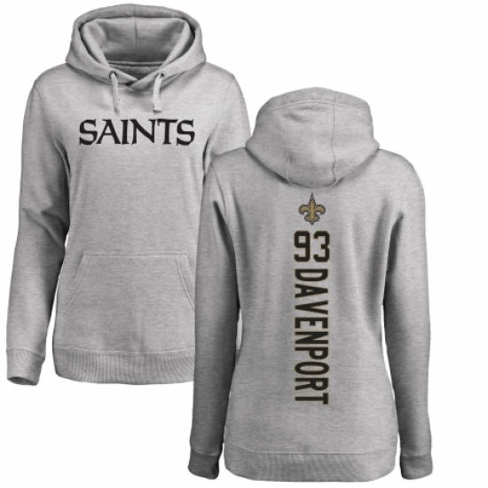 >NFL Women's Nike New Orleans Saints #93 Marcus Davenport Ash Backer Pullover Hoodie
