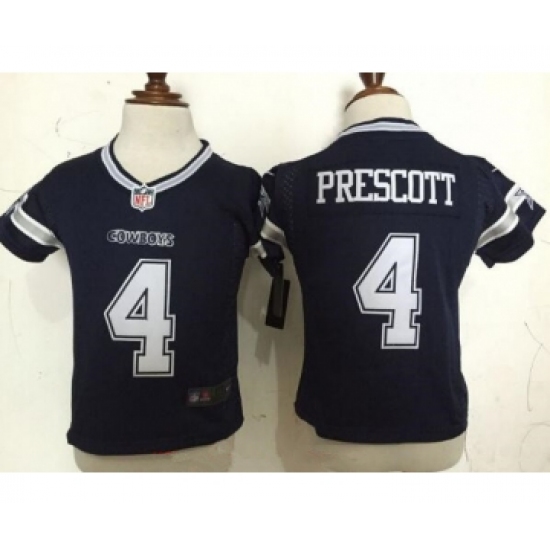 >Toddler Dallas Cowboys #4 Dak Prescott Navy Blue Team Color Stitched NFL Nike Game Jersey