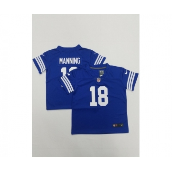 >Toddlers Indianapolis Colts #18 Peyton Manning Blue 2022 Vapor Untouchable Stitched NFL Nike Limited Jersey