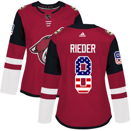 Home>NHL>Arizona Coyotes>Tobias Rieder>Women's Adidas Arizona Coyotes #8 Tobias Rieder Authentic Red USA Flag Fashion NHL Jersey