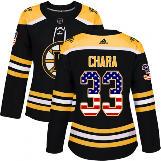 Home>NHL>Boston Bruins>Zdeno Chara>Women's Adidas Boston Bruins #33 Zdeno Chara Authentic Black USA Flag Fashion NHL Jersey