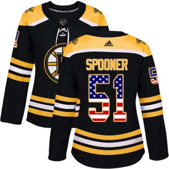 Home>NHL>Boston Bruins>Ryan Spooner>Women's Adidas Boston Bruins #51 Ryan Spooner Authentic Black USA Flag Fashion NHL Jersey