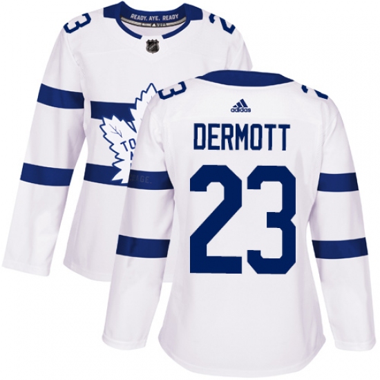 Women's Adidas Toronto Maple Leafs #23 Travis Dermott Authentic White 2018 Stadium Series NHL Jersey