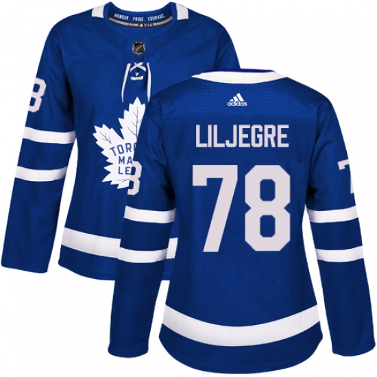 Home>NHL>Toronto Maple Leafs>Timothy Liljegren>Women's Adidas Toronto Maple Leafs #78 Timothy Liljegren Authentic Royal Blue Home NHL Jersey