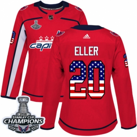 Women's Adidas Washington Capitals #20 Lars Eller Authentic Red USA Flag Fashion 2018 Stanley Cup Final Champions NHL Jersey