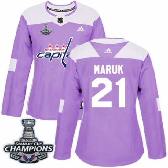 >Women's Adidas Washington Capitals #21 Dennis Maruk Authentic Purple Fights Cancer Practice 2018 Stanley Cup Final Champions NHL Jersey