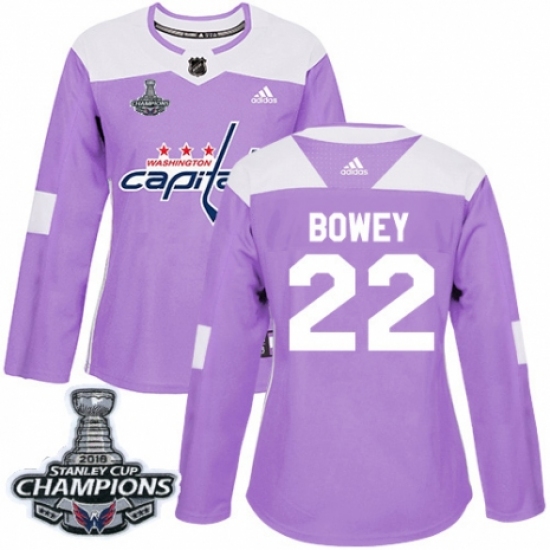 Women's Adidas Washington Capitals #22 Madison Bowey Authentic Purple Fights Cancer Practice 2018 Stanley Cup Final Champions NHL Jersey