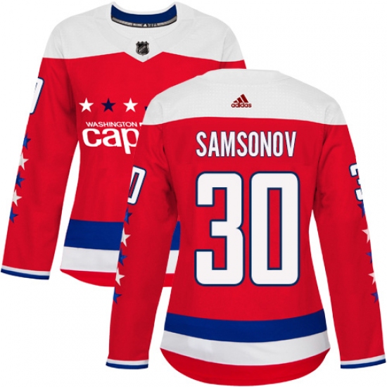Women's Adidas Washington Capitals #30 Ilya Samsonov Authentic Red Alternate NHL Jersey