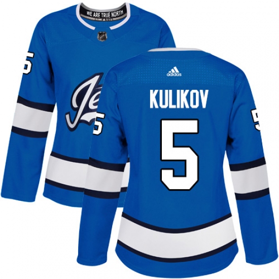 >Women's Adidas Winnipeg Jets #5 Dmitry Kulikov Authentic Blue Alternate NHL Jersey