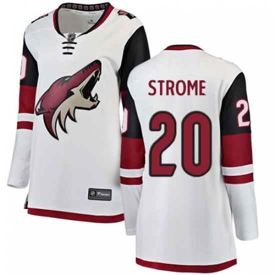 Home>NHL>Arizona Coyotes>Dylan Strome>Women's Arizona Coyotes #20 Dylan Strome Authentic White Away Fanatics Branded Breakaway NHL Jersey