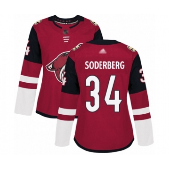 Women's Arizona Coyotes #34 Carl Soderberg Authentic Burgundy Red Home Hockey Jersey