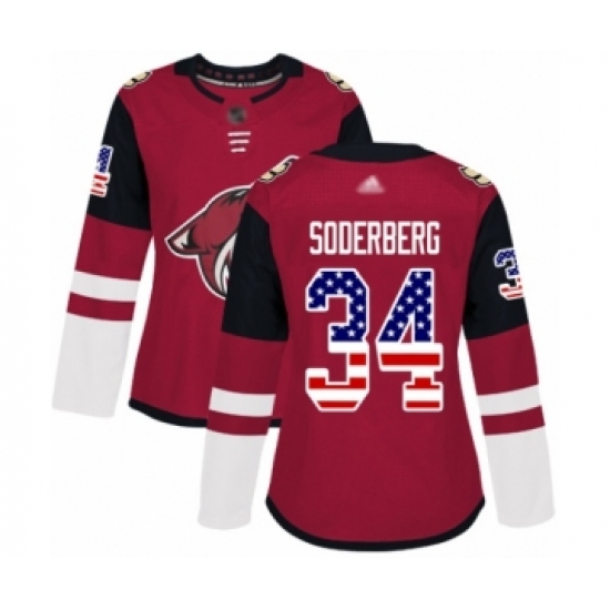 Women's Arizona Coyotes #34 Carl Soderberg Authentic Red USA Flag Fashion Hockey Jersey