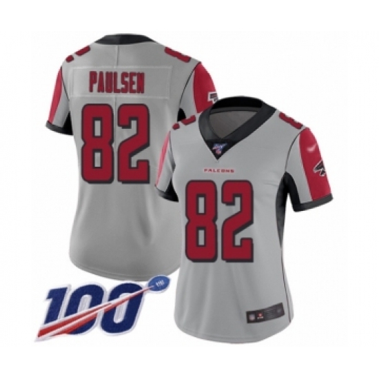 >Women's Atlanta Falcons #82 Logan Paulsen Limited Silver Inverted Legend 100th Season Football Jersey