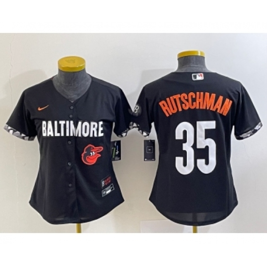 Women's Baltimore Orioles #35 Adley Rutschman Number Black 2023 City Connect Cool Base Stitched Jersey 1