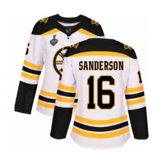 Women's Boston Bruins #16 Derek Sanderson Authentic White Away 2019 Stanley Cup Final Bound Hockey Jersey