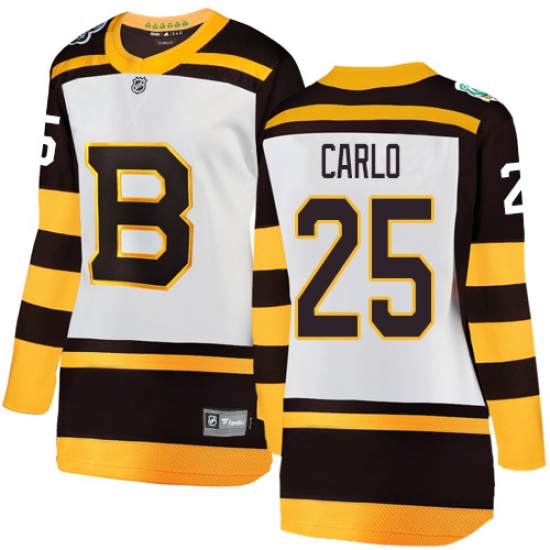 >Women's Boston Bruins #25 Brandon Carlo White 2019 Winter Classic Fanatics Branded Breakaway NHL Jersey