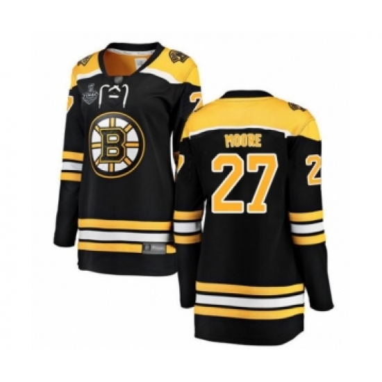 Women's Boston Bruins #27 John Moore Authentic Black Home Fanatics Branded Breakaway 2019 Stanley Cup Final Bound Hockey Jersey