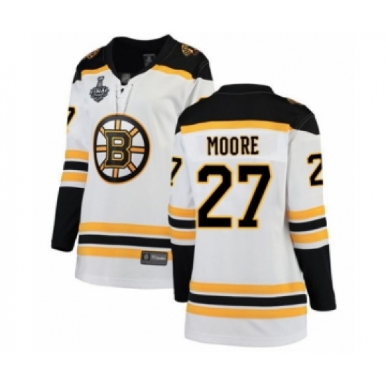 Women's Boston Bruins #27 John Moore Authentic White Away Fanatics Branded Breakaway 2019 Stanley Cup Final Bound Hockey Jersey