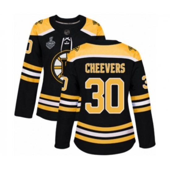 Women's Boston Bruins #30 Gerry Cheevers Authentic Black Home 2019 Stanley Cup Final Bound Hockey Jersey