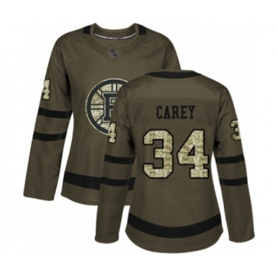 >Women's Boston Bruins #34 Paul Carey Authentic Green Salute to Service Hockey Jersey